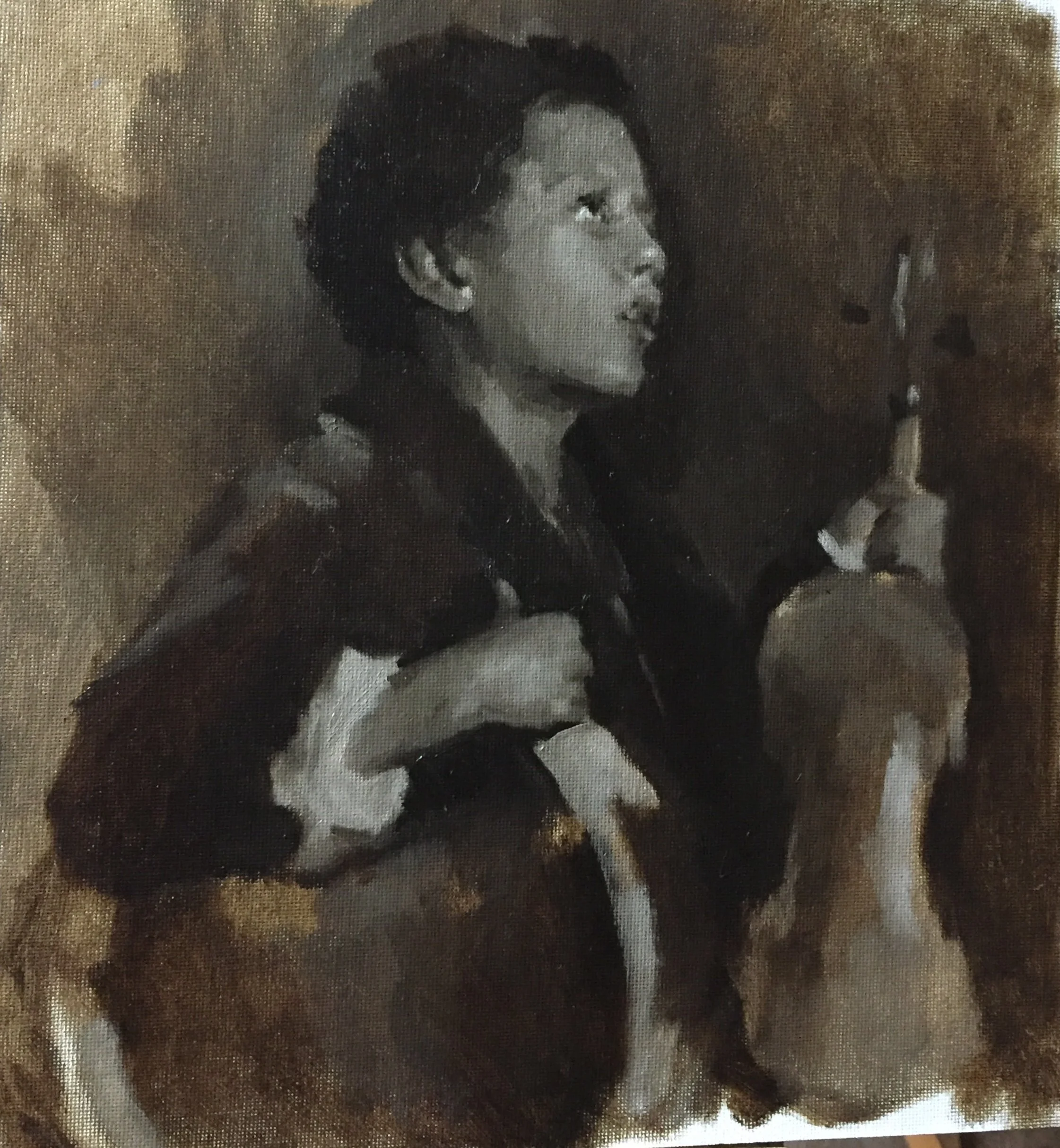 Together we investigate the shapes of the human body and the conceptual principles of how light falls across and interacts with those shapes to create the illusion of form. Using a limited palette, students can learn these foundational principles without juggling the added complexity of full color. This method can act as an under painting for later explorations of long pose, or can be used as a final painting procedure.
